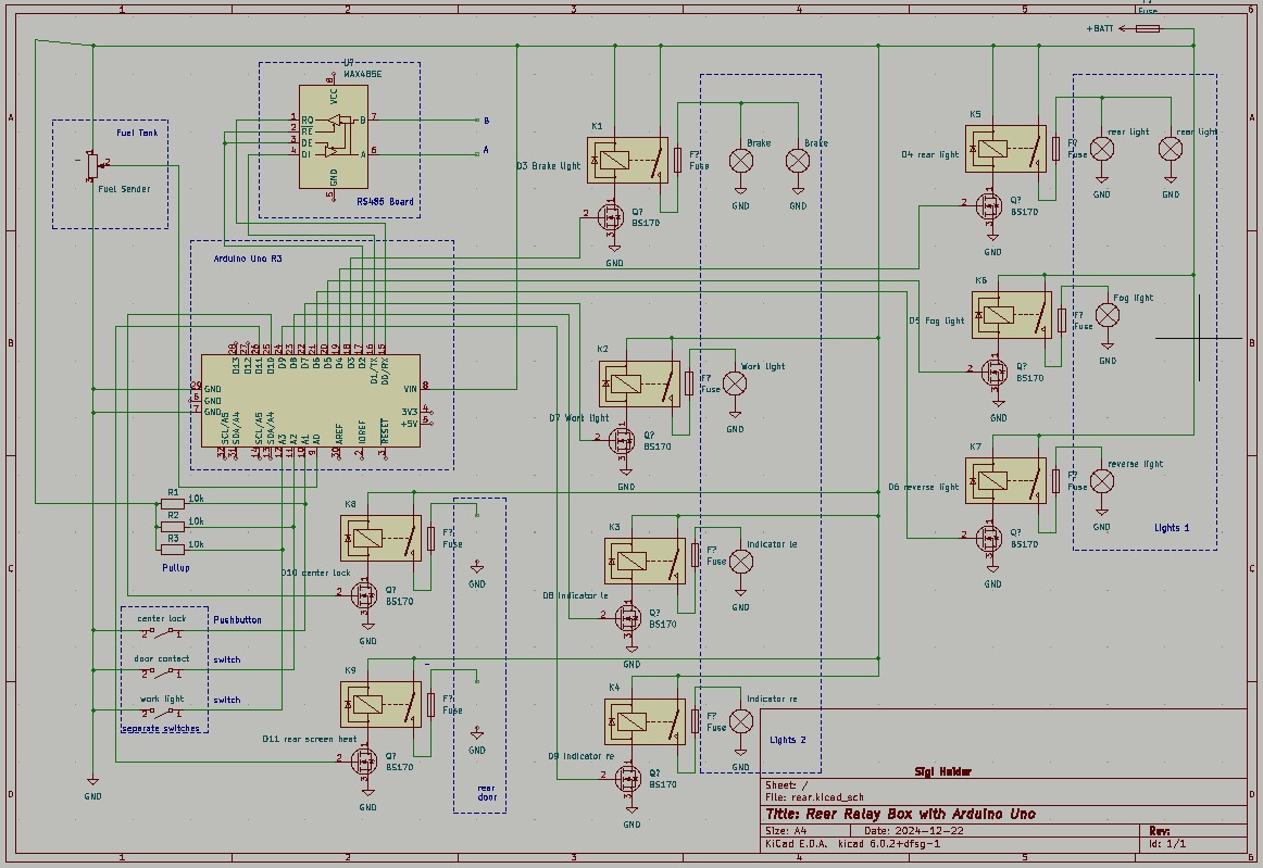 Inzwischen ist klar, dass für hinten nur eine Relais Box nötig wird, wenn ich eine mit mehreren Relais nehme.