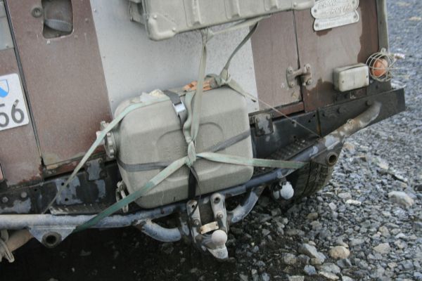Das Wasser kommt aus einem 20 l Armee Trinkwasserkanister mit Tauchpumpe im Küchenblock unter dem Waschbecken. Mehr als 20 l brauchte ich bisher kaum und wenn, dann nutzte ich Schweizer Armee Wassersäcke, die sonst kaum Platz brauchen, wenn weniger Wasser nötig ist. 3 Stück liegen im Auto und das wären nochmal 60 Liter. Ich möchte nirgens einen Tank haben, denn er bedingt, dass auch die Voraussetzungen zum Tanken gegeben sein müssen. Zum Tanken braucht man einen Schlauch, passende Anschlüsse am Hahn ... Adapter. Den Trinkwasserkanister habe ich schon einfach in einen Isländischen Bach getaucht und gefüllt. Als reines Trinkwasser benutzt man am häufigsten sowieso gekaufte PET Flaschen. Für Nutz- und Kochwasser muss man sich wirklich fragen, ob man so einen grossen fest eingebauten Tank wirklich die meisste Zeit fast leer spazieren fahren will und ob das Wasser drin nicht auch mal etwas alt wird. Verschmutzen kann er auch und dann fragt sich "wie reinige ich den zuverlässig?". Chemisch? Geht wohl nur so. Wer schon mal den Finger durch den schmierigen Bio-Rasen nach einigen Wochen Gebrauch in so einem Tank gezogen hat, mag keinen mehr. Den Plastik-Kanister von der Armee schmeisse ich einfach weg, wenn er wirklich in einem so undefinierten Zustand sein sollte, dass ich nicht weiss, ob das Wasser drin nun geniessbar bleibt. Dann besorge ich einen Neuen, zur Not ist sogar der 20 l Treibstoffkanister aus Blech baugleich. Er ist innen ja lackiert und neu geht der auch. Ausserdem kann man ja auch den Plastik-Kanister chemisch reinigen. Auf jeden Fall habe ich wenn ich will fast die gleiche Wasserkapazität dabei und brauche deutlich weniger Platz dafür. Die Wassersäcke haben ausserdem den Vorteil, dass sie im Notfall zerschnitten vorzügliches Dichtungsmaterial sind.