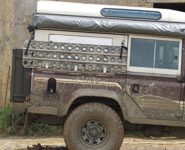 Ein Extremfall ist sicher, dass ich die Bleche der Länge nach zusammen geschraubt als Rampe benutze, um mein Motorrad hinten in den Landy zu bugsieren. Vier 10er Schrauben mit Scheiben und Muttern reichten.
